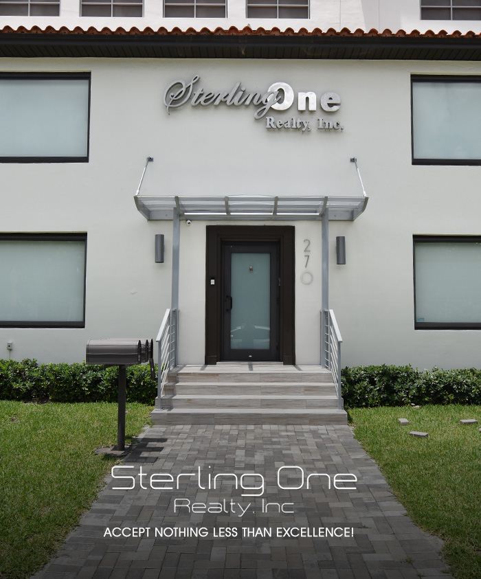 Since 1993, Sterling One Realty Inc., and its Sales Associates are committed to assisting clients find their dream homes in Miami Beach, Coconut Grove, Brickell, Miami Roads, Coral Gables, Downtown Miami, Key Biscayne and Greater Miami. Sterling One was founded by William and Betsy Alvarez as a small family business and has expanded through the years to 20 Sales Associates, 2 Managing Brokers. The Primary office is located in the Miami Roads/Brickell Area and a satellite office in Miami Beach. Sterling One has been a member of the Realtor Association of Miami and the Beaches for over 17 years.